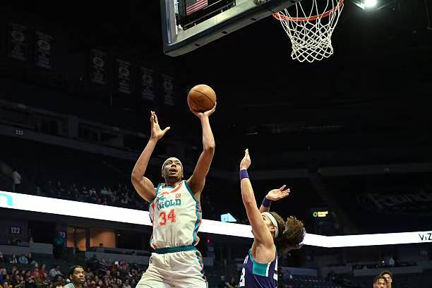 打出大号两双数据,会有球队考虑签下掘金二队的这位内线铁塔吗?