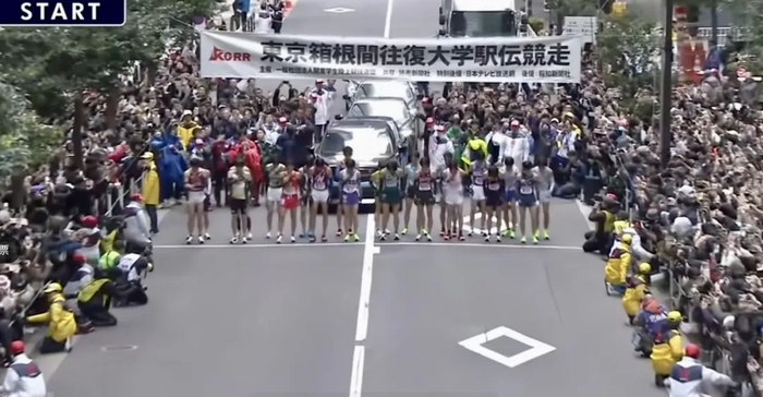 箱根驿传始于1920年,由“日本马拉松之父”金栗四三创办,今年已是第102届。从东京大手町出发,一路穿过市中心,沿着旧时的东海道,途经风光旖旎的海岸线抵达小田原,随后踏上通往箱根的陡峭山路,这项全程217.1公里的接力赛在每年1月2日和3日举行,是日本新年国民级赛事。